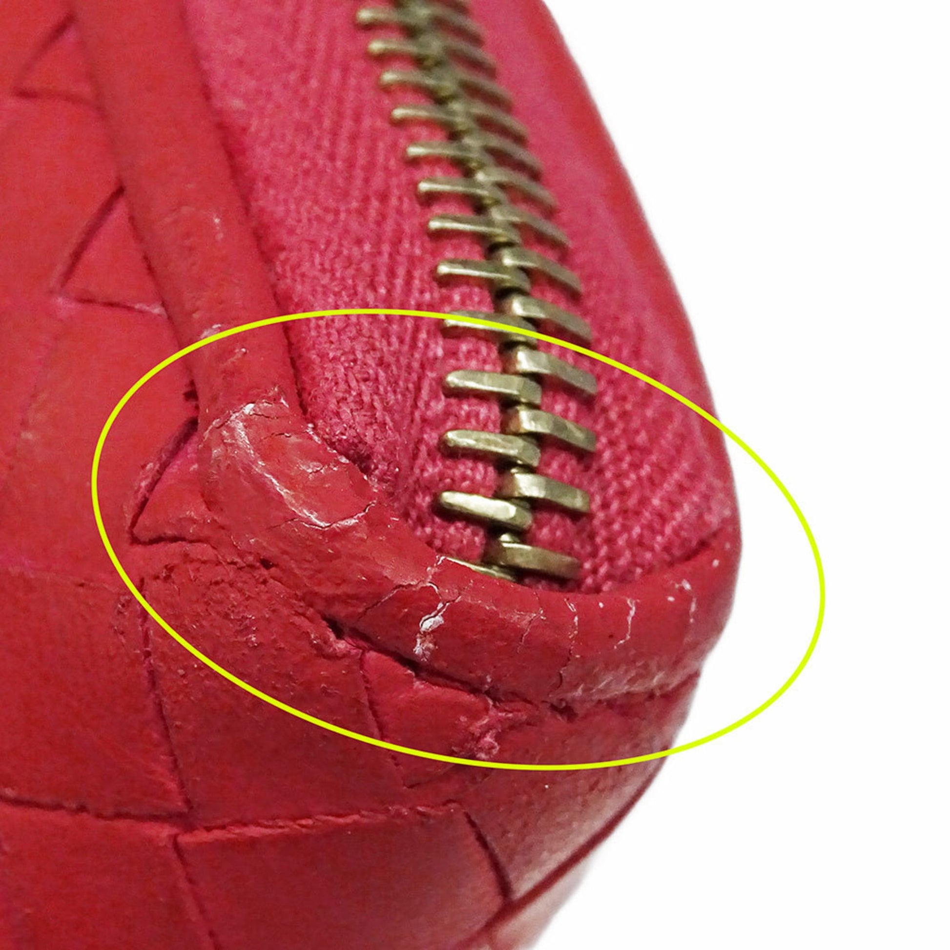 - Damage Ranking: Edges Crack Slight, Hardware Green rust Slight, Zipper pull Crack Slight